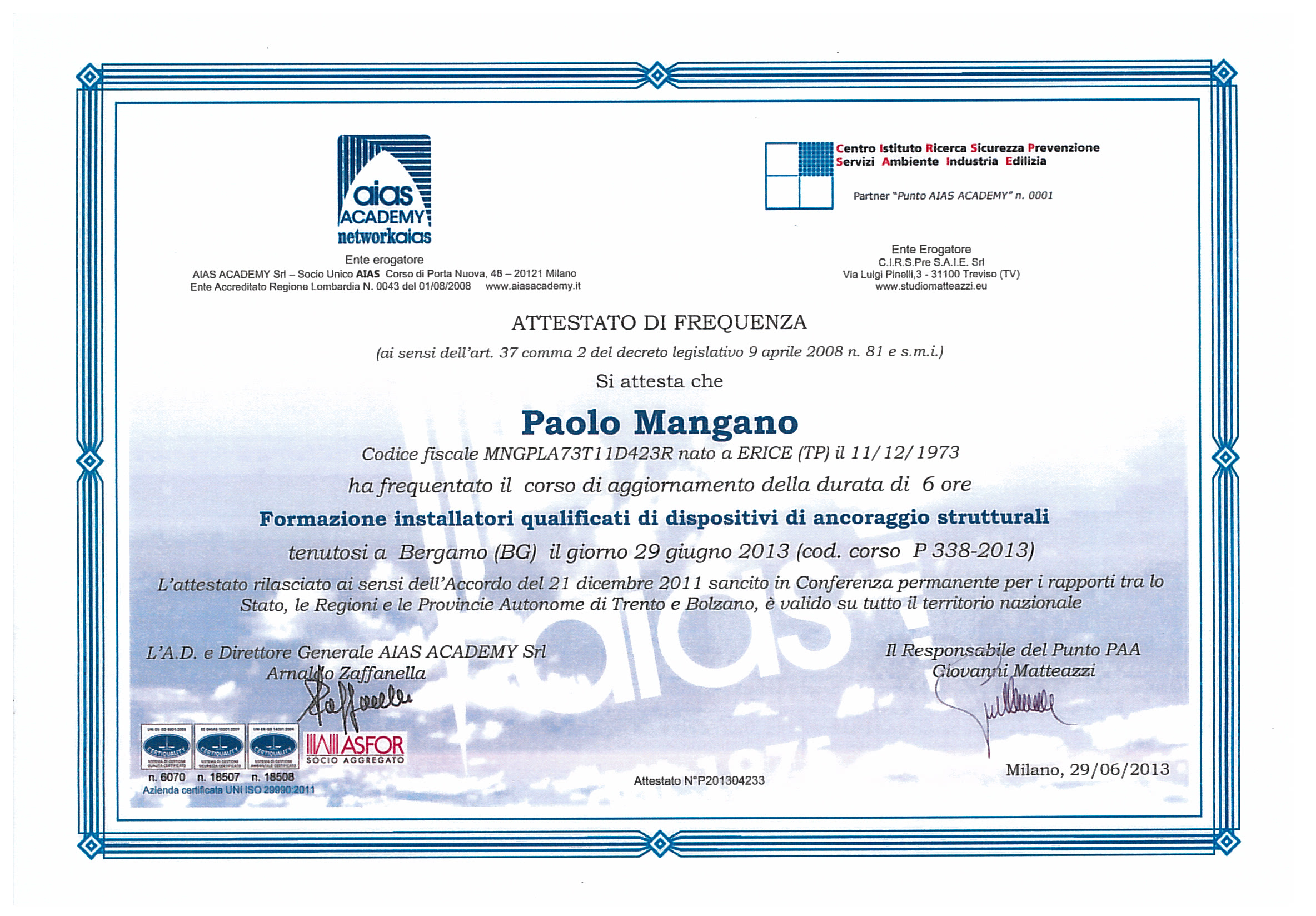 Normativa UNI EN 795 DPI contro le cadute dall’alto: DISPOSITIVI DI DISCESADPI contro le cadute dall’alto: DISPOSITIVI ANTICADUTA DI TIPO GUIDATO CON LINEA DI ANCORAGGIODPI contro le cadute dall’alto: CORDINIDPI contro le cadute dall’alto: ASSORBITORI DI ENERGIADPI contro le cadute dall’alto: DISPOSITIVI ANTICADUTA DI TIPO RETRATTILEDPI contro le cadute dall’alto: IMBRACATURE PER IL CORPODPI contro le cadute dall’alto: CONNETTORIDPI contro le cadute dall’alto: SISTEMI DI ARRESTO CADUTADPI contro le cadute dall’alto: METODI DI PROVADPI contro le cadute dall’alto: REQUISITI GENERALI PER LE ISTRUZ. PER L’USO E LA MARCATURA. Sistemi di arresto caduta: guida per la selezione e l’usoProtezione contro le cadute dall’alto – Dispositivi di ancoraggio – requisiti e prove